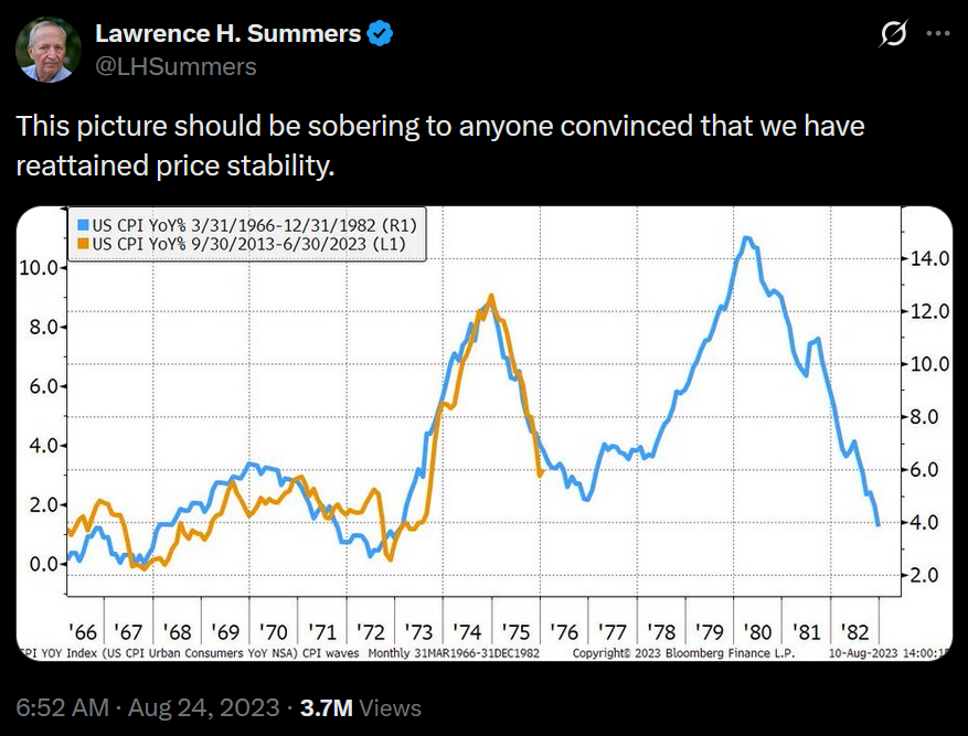 Almost three years ago, economist Larry Summers posted a chart overlaying 1970s CPI data onto the post-2013 trajectory as a warning against declaring victory against inflation too soon. Misleading axes led critics to call it a “chart crime” — perhaps the mildest controversy of Summers’ career. Common wisdom at the time also could not imagine any geopolitical calamity that might send prices skyrocketing like the 1979 oil shock did.